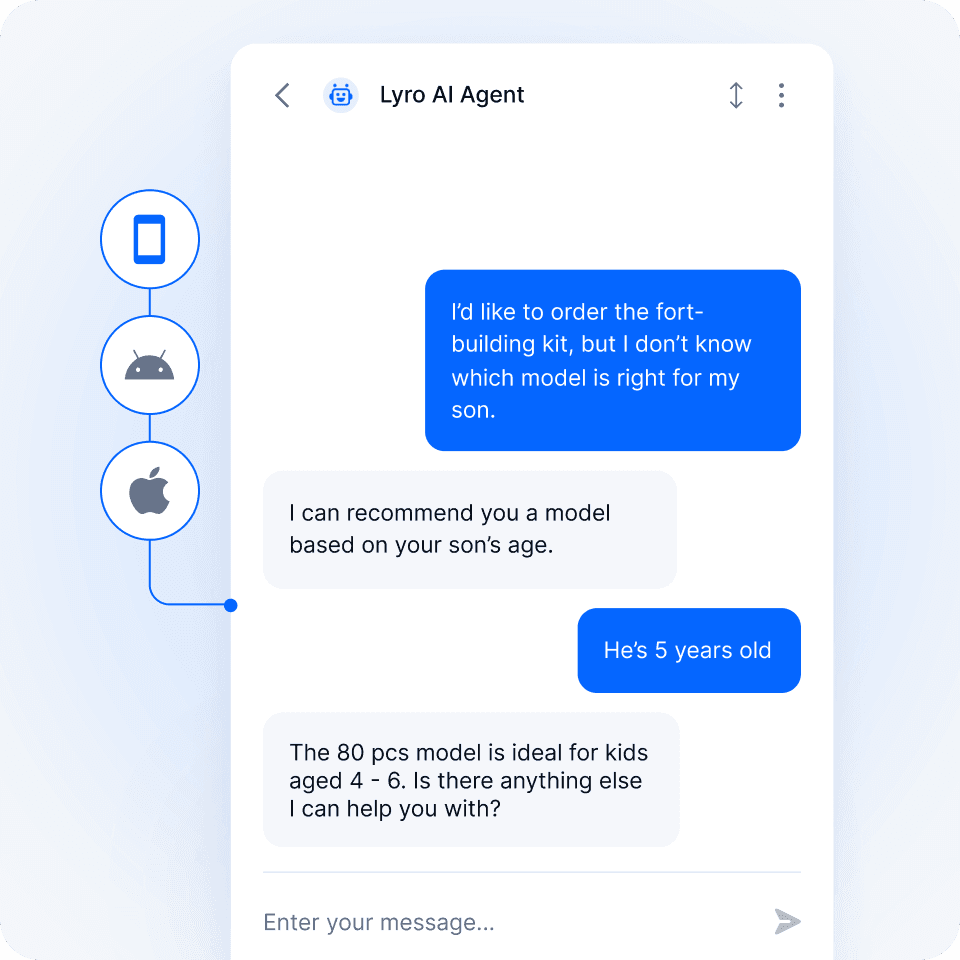 Trigger Flows and Lyro AI Agent from your app. Automate support, capture leads, guide users—all while they stay engaged in your mobile experience.