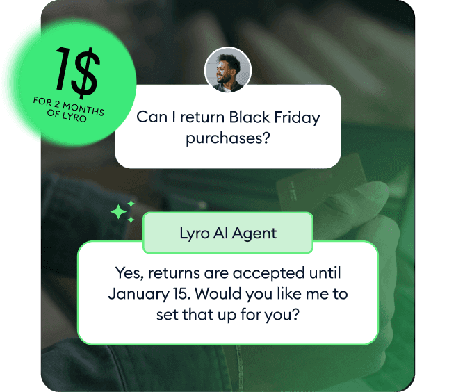 The holiday season is the toughest test for customer service. More questions, more orders, more pressure. Wait until Black Friday? You’ll be too late to get set up. Start today? You’ll have Lyro ready to take on the rush. That’s why we’re opening our Black Friday deal early.