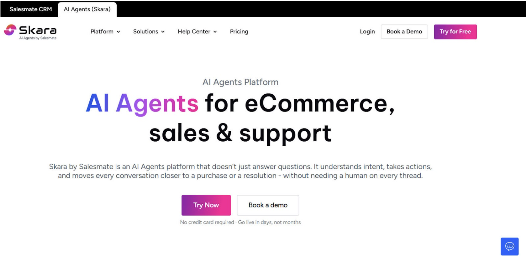 | Skara AI agents (Salesmate) | 4.7/5 ⭐️ | ❌ | End-to-end ecommerce automation |