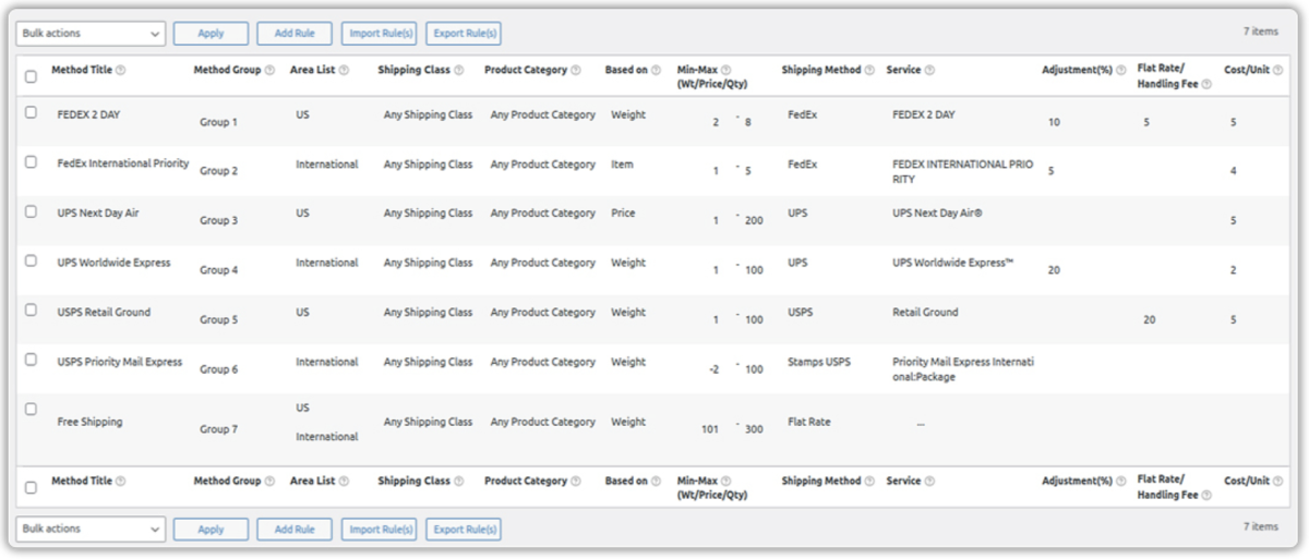 - Advanced rule-based rate calculation by destination, weight, price, and shipping class