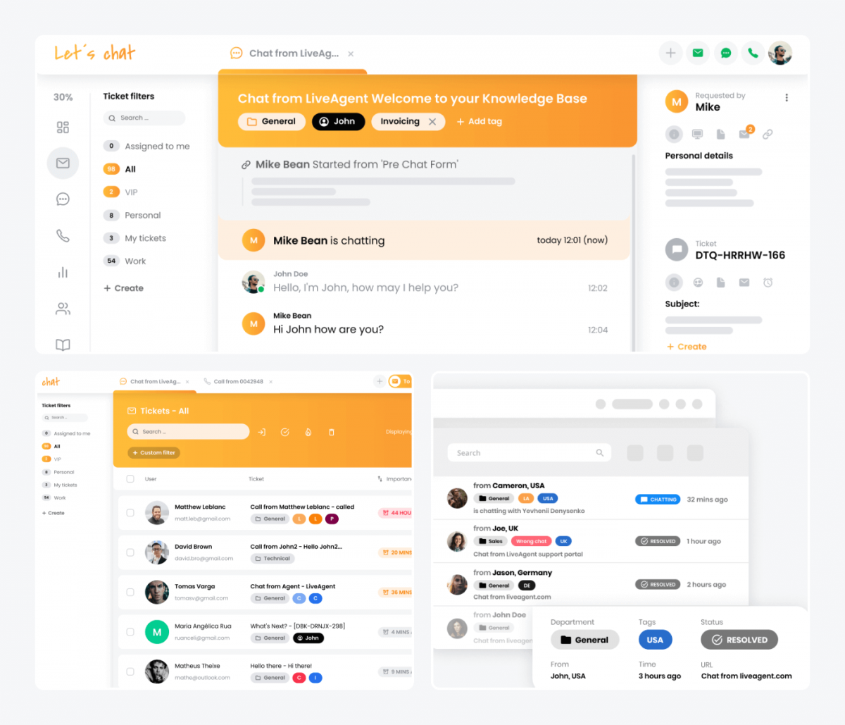LiveAgent is a help desk tool renowned for its live chat solution. This alternative to live chat has a ticketing system used by reps to personalize conversations and streamline help desk workflows. The solution is widely used by small businesses to handle large volumes of requests and orders.