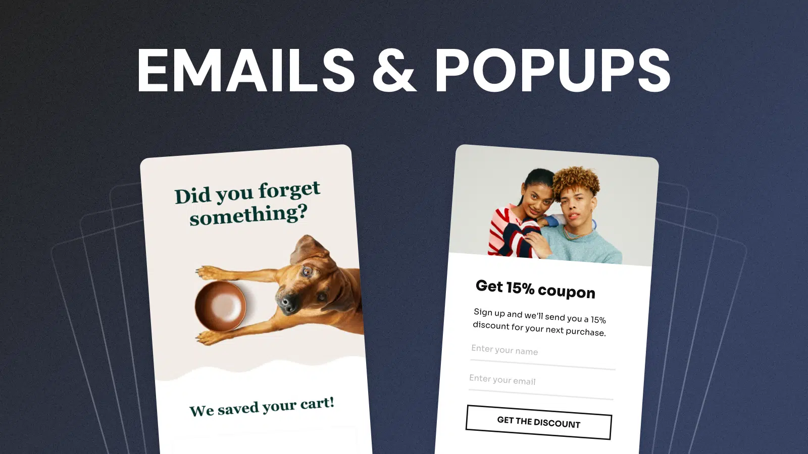 The two most common ways you can use straight from your site are chatbots and pop-ups. And if the visitor has already left your ecommerce store, you can send them Shopify abandoned cart emails, SMS messages, and push notifications. You can also show retargeting ads on third-party sites and social media channels.